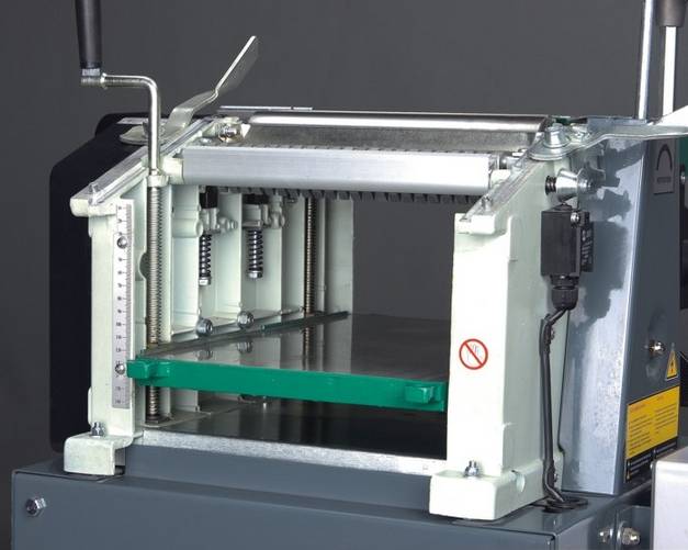 - легкая и удобная регулировка рейсмусового стола по высоте с помощью вращающейся ручки;