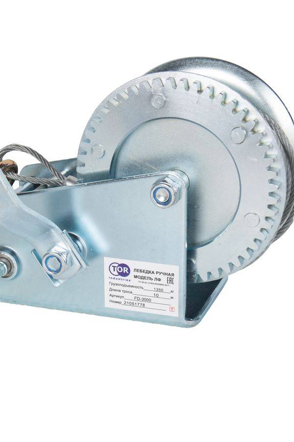 Лебедка ручная TOR ЛФ-3000 (FD) г/п 1,3 т длина троса 10 м