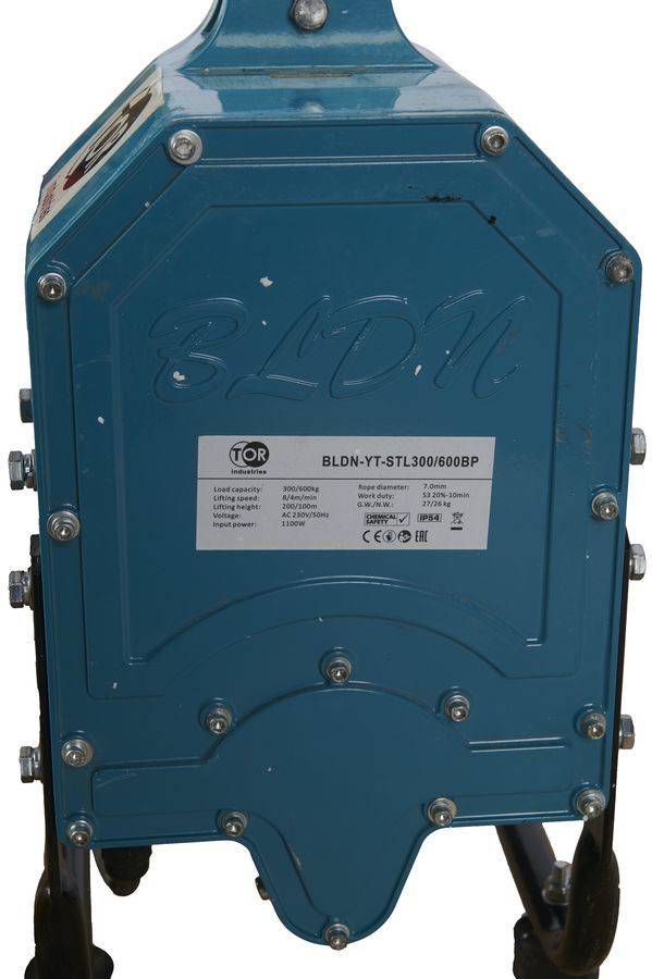 Модель:BLDN-YT-STLГрузоподъемность, кг:300/600 (двойной трос)
