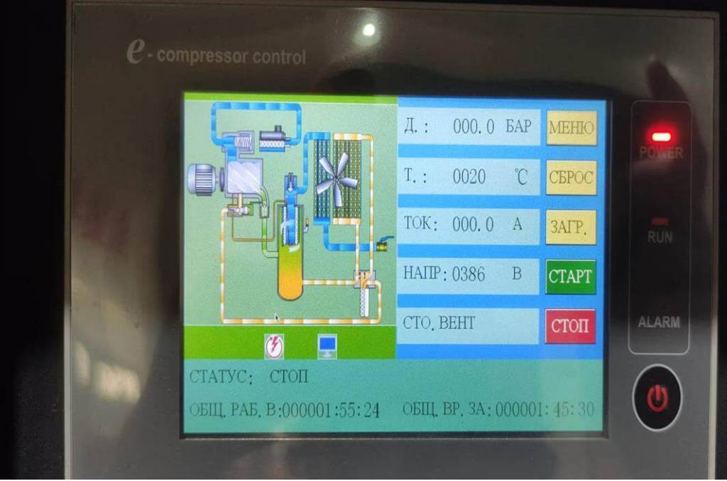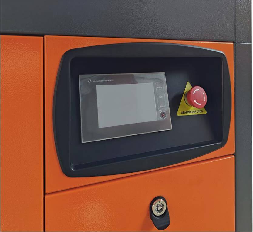 Винтовой компрессор MBR 15-10-500 оснащен системой управления с сенсорным дисплеем, позволяющим в автоматическом режиме контролировать работу оборудования в режиме реального времени. Отличительной особенностью является полностью русифицированная программа управления.