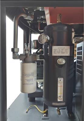 В состав компрессорной станции входит ресивер объемом 500 л. Он используется в качестве временного хранилища в периоды пиковых нагрузок в системе, а также оптимизирует эффективность работы установки.