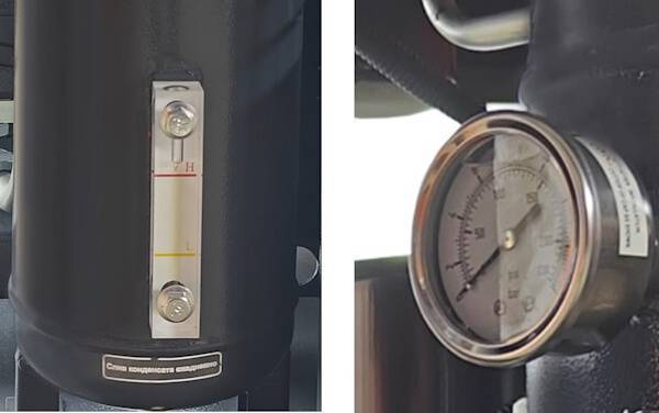 Накопительный бак сепаратора оснащен шкалой уровня масла и манометром.
