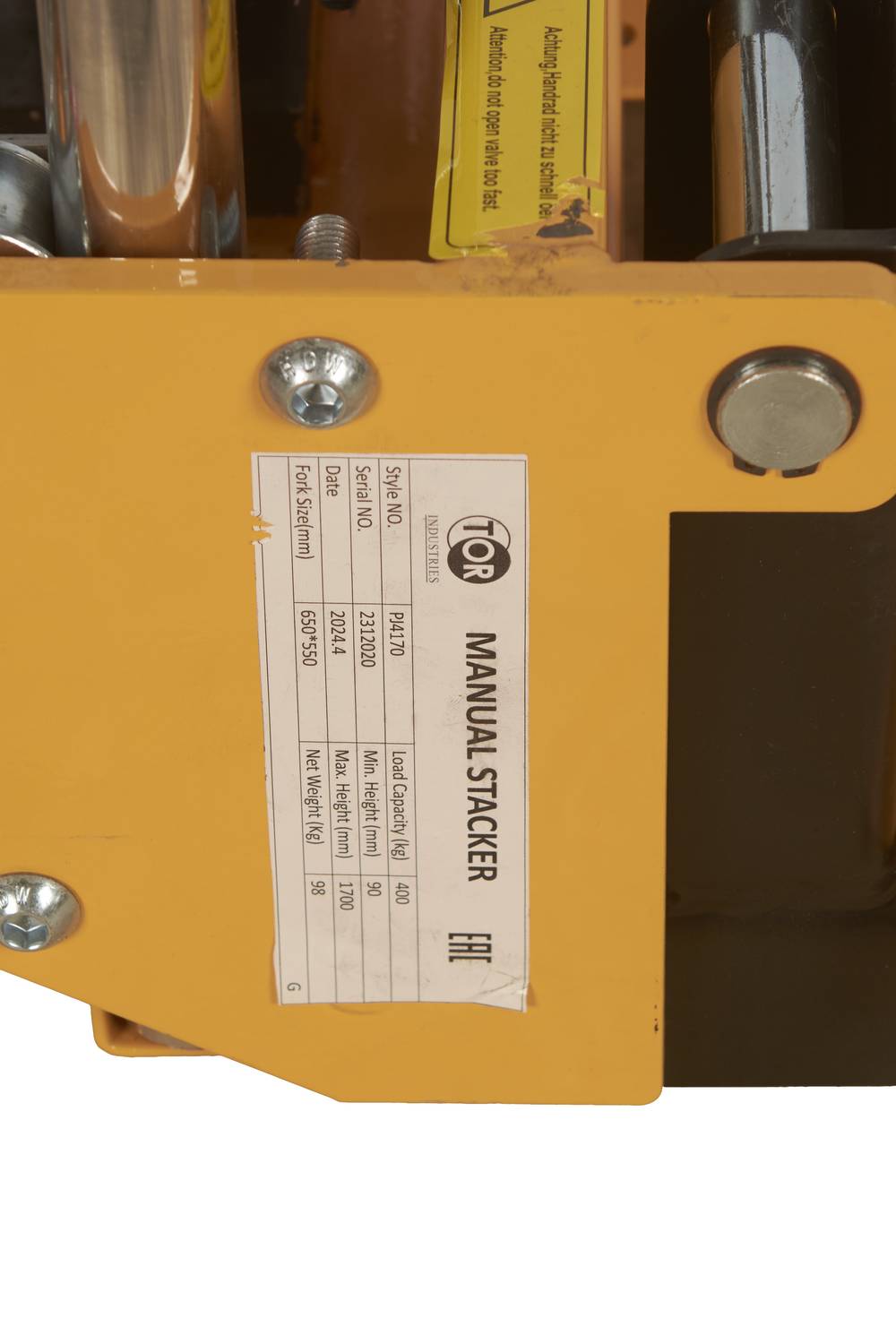 Штабелер гидравлический 0,4 т 1,7 м TOR PJ4170 облегченный
