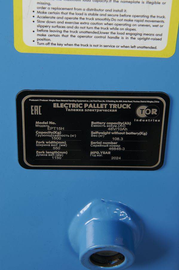 TOR EPT15H относится к компактным полностью электрическим сопровождаемым моделям. Общая длина корпуса немногим более гидравлической рохли.