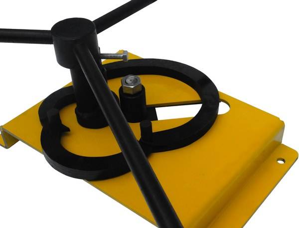 Инструмент удобный и компактный 350 на 230 мм. Оснащен мощным воротком, работающим с квадратом до 12х12 мм. В комплект поставки входит 2 эксцентрика для зажима заготовки. Эксцентрик для квадрата 8 и 10 мм и для полосы максимум 25 мм. Наличие 4х сегментов позволяет разнообразить формы и размеры изготавливаемых вами элементов. Минимальный внутренний диаметр завитка 35 мм, а максимальный 190 мм.