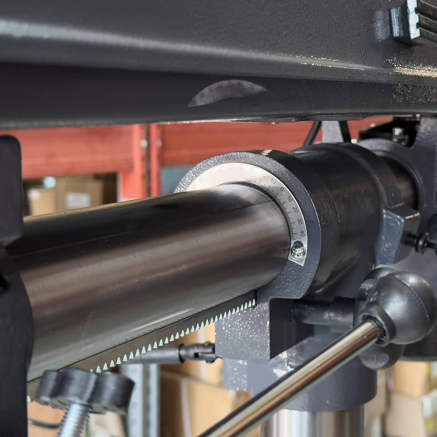 - Сверлильная головка: Двигается по рейке, крутится вокруг колонны и регулируется по углу для сложных подходов.
