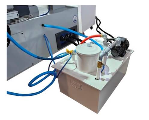 Состояние охлаждающей жидкости влияет на качество и скорость резки. Так как жидкость быстро загрязняется продуктами эрозионной обработки, станция оснащена фильтрами грубой и мелкой очистки, что позволяет увеличить ресурс использования жидкости в станции СОЖ и уменьшить расходы за закупку специальной эмульсии для охлаждения.
