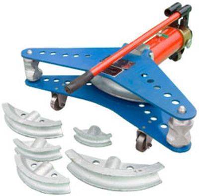 Оборудование состоит из насоса гидравлического типа, цилиндра и наконечника со сменным гибочным сегментом. Удобство транспортировки обеспечивают роликовые колесики, которые при необходимости можно снять. Основные детали покрыты краской, которая защищает их от возникновения коррозии.