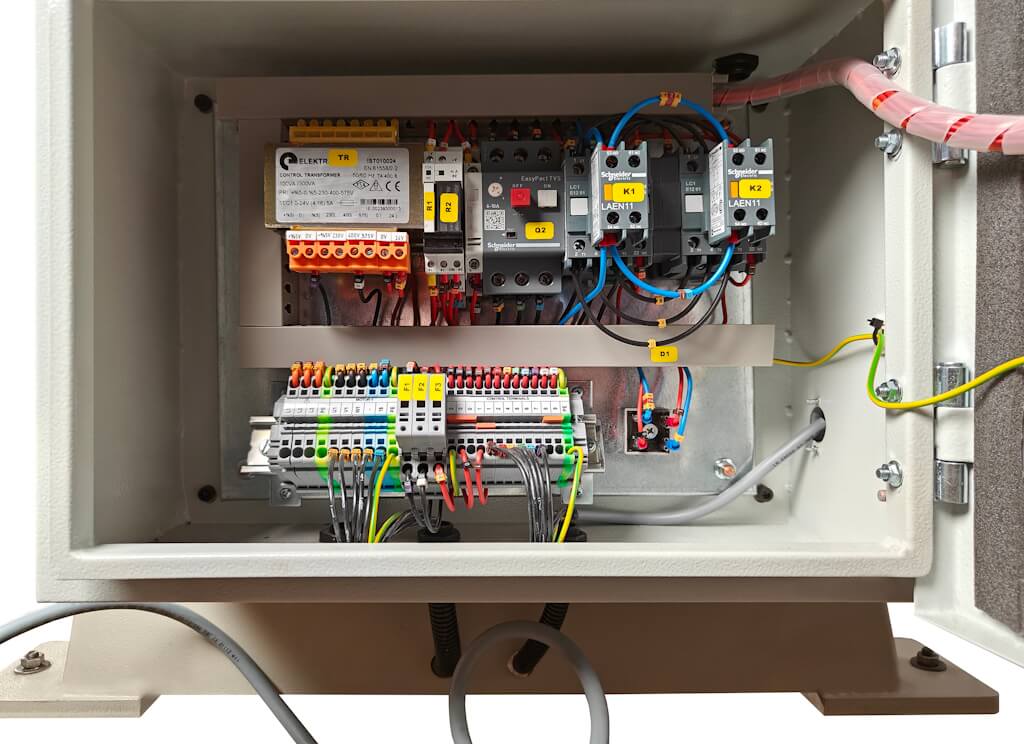 С правой стороны станка расположен электрошкаф. Внутри которого расположены контроллер, автоматы и пускатели. Станок укомплектован автоматикой Schneider.