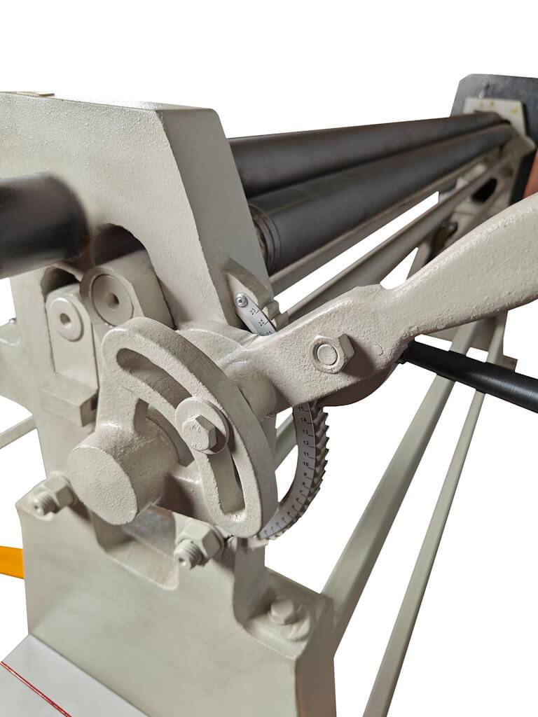 Наличие удобного механизма прижима листа позволяет быстро и качественно настроить станок. Прижим листа осуществляется вручную нижним валком при помощи вращения маховика.