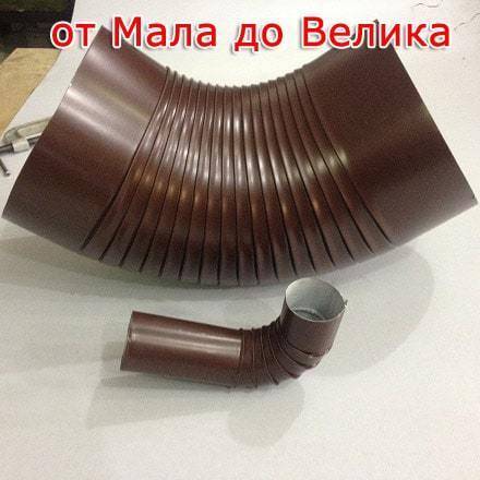 Cтанки для изготовления гофрированного колена предназначены для придания прямому участку круглой трубы водосточной системы необходимого угла поворота методом цикличного холодного двухэтапного штампования. В данных станках используется метод внутреннего гофрирования трубы, когда складка (гофра) спрятана внутрь трубы, что значительно отличается от метода внешнего гофрирования как технологией производства, так и внешним видом готовой продукции.
