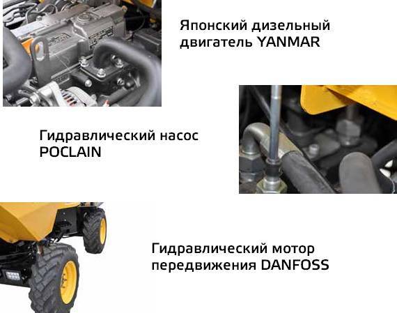- Движение машины обеспечивает гидравлический мотор DANFOSS.