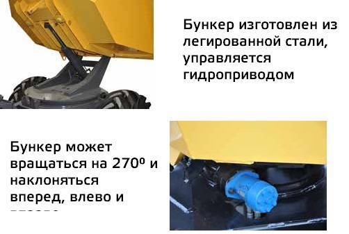 Думпер предназначен для накопления, перемещения и сваливания различных сыпучих материалом.