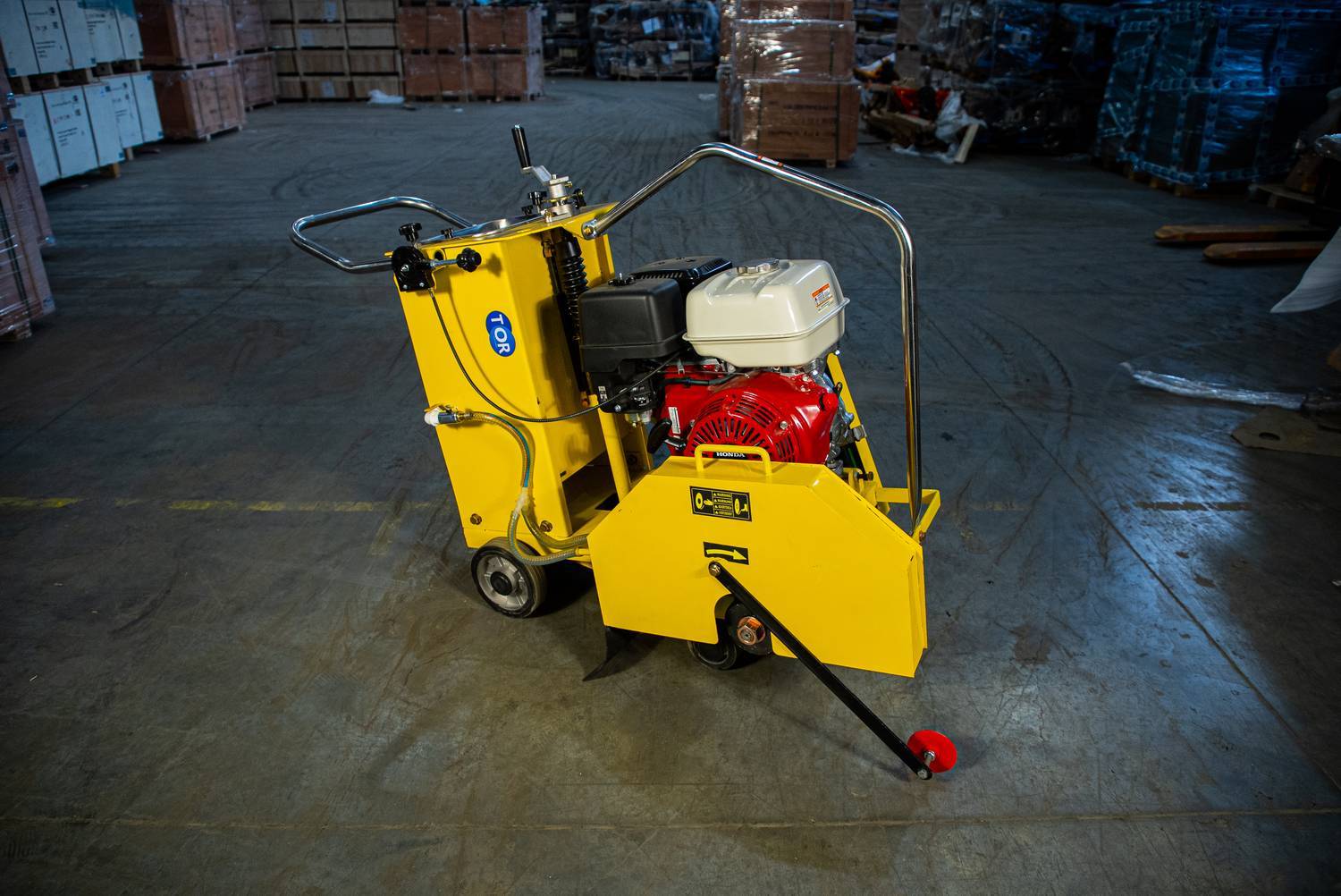 Резчик швов TOR HQR500A-2 (Honda) оснащен бензиновым двигателем Honda GX390. Диаметр, используемых дисков от 350 до 500 мм позволяет достигать максимальную глубину реза до 180 мм. Встроенная система подачи воды снижает образование пыли при проведении работ и охлаждает диск, продляя его срок службы.